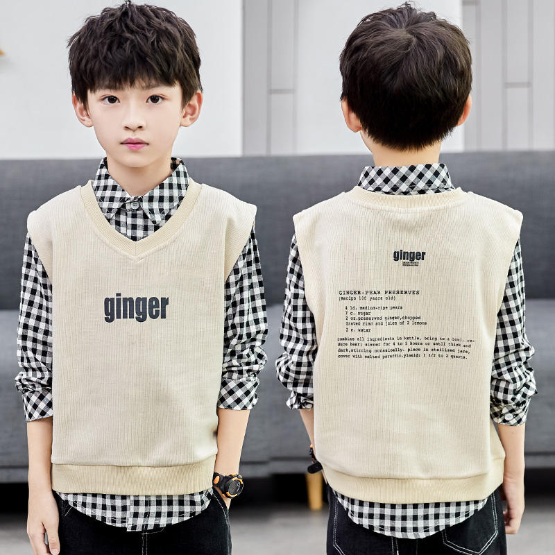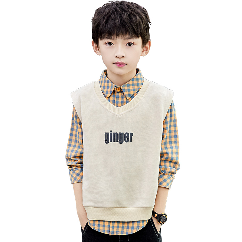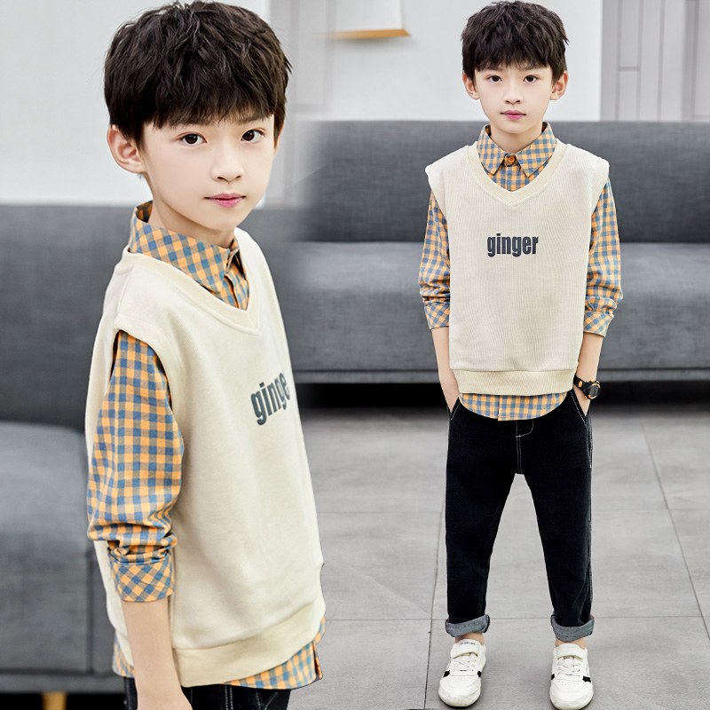 Boy's autumn clothes foreign air long sleeve shirt 2022 new spring and autumn money casual handsome boy CUHK Scout lining clothes