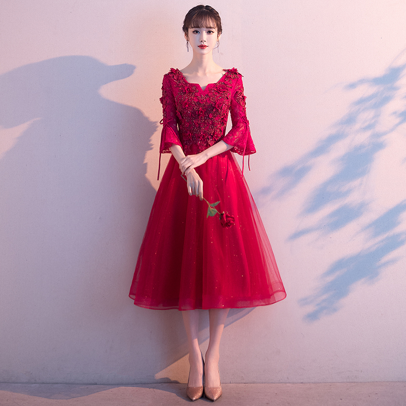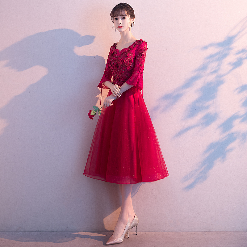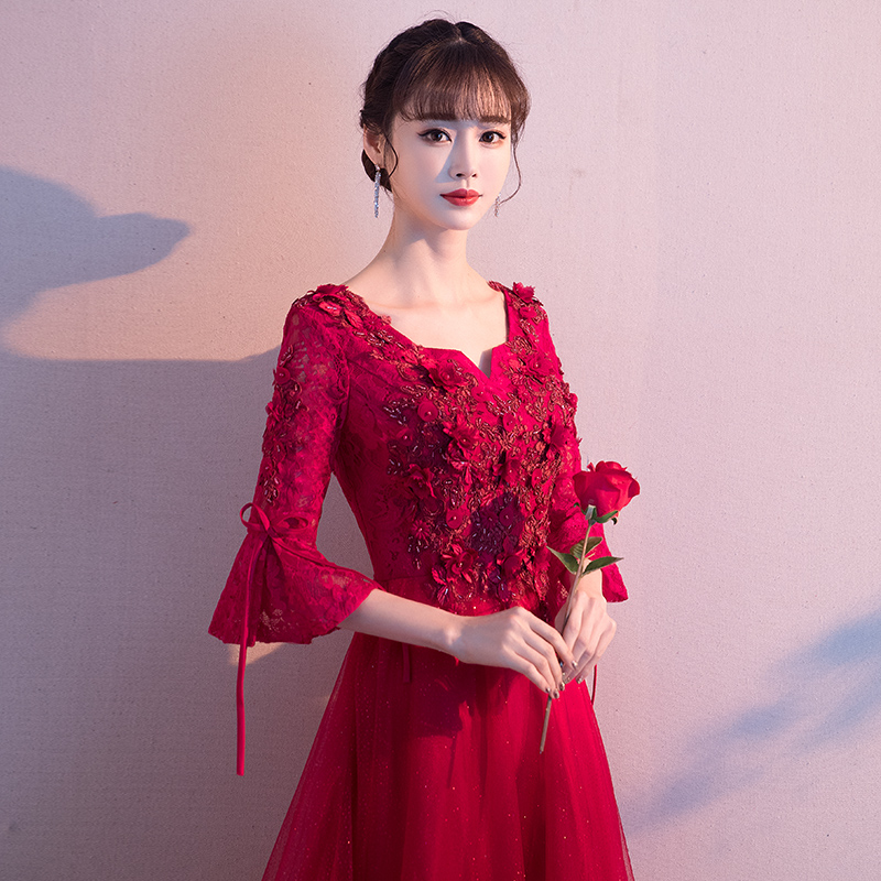 Wine red square collar Regular medium long version red square collar Regular version of wine red square collar pregnant woman's medium long version red square collar pregnant woman's medium long version of wine red upright collar Regular medium long version red