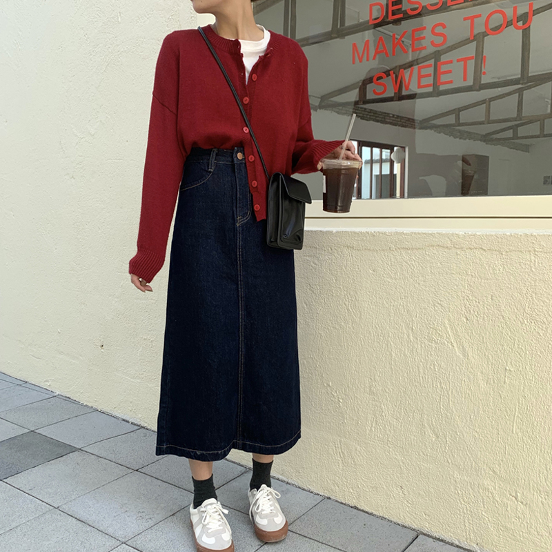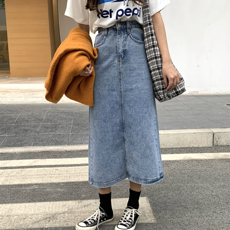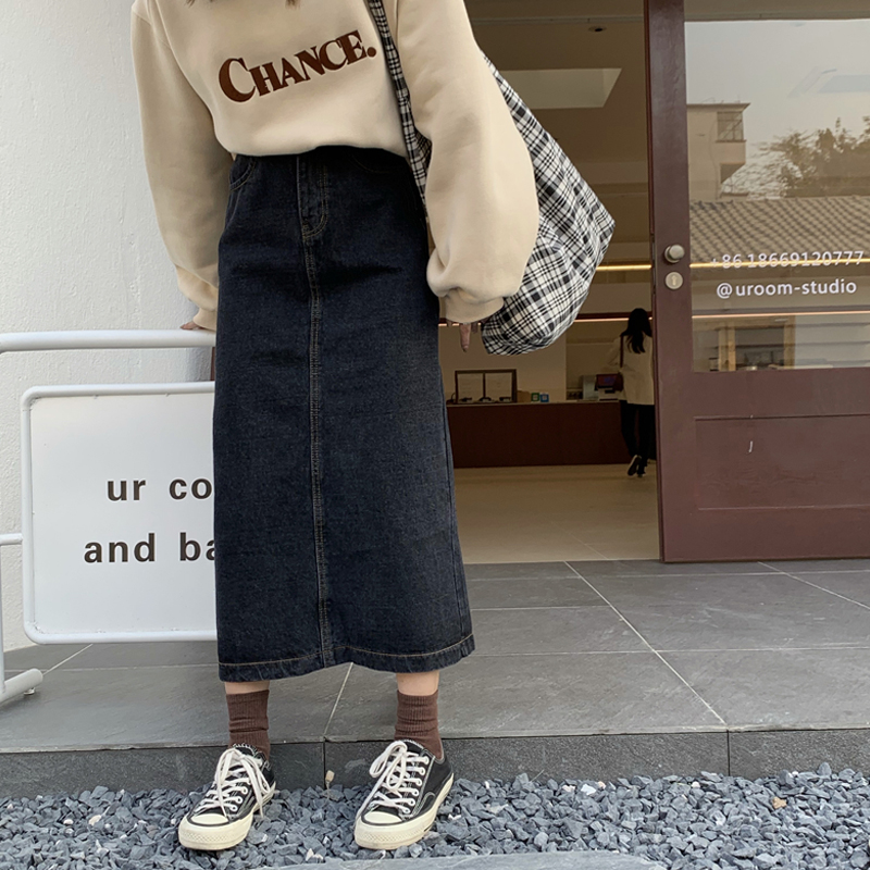 Black skirt women's spring and autumn 2021 new Korean chic denim skirt high waist A word thin split skirt