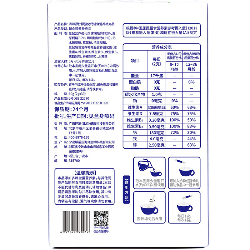 (Two Boxes) Clear Knowledge Source Citric Acid Calcium Supplement Calcium Powder 2g * 30 strips * 2 boxes