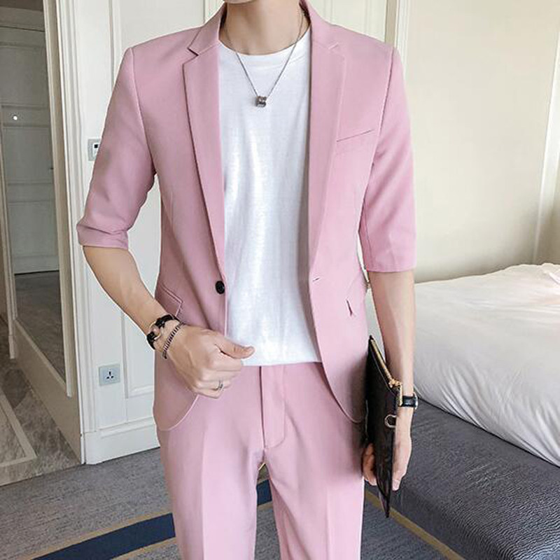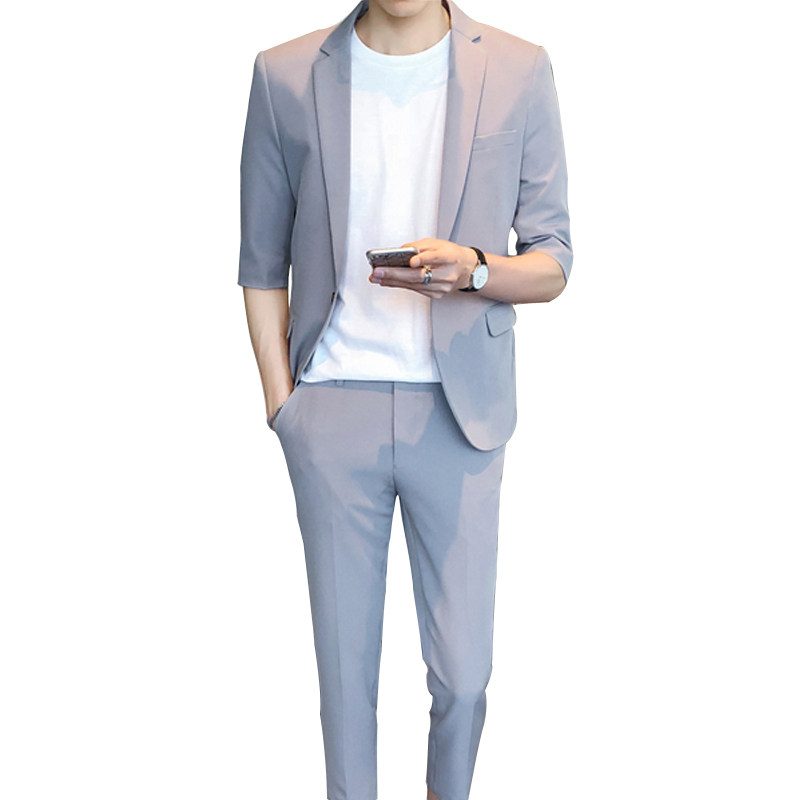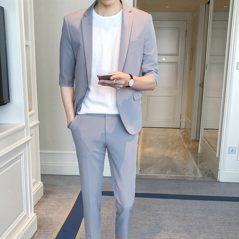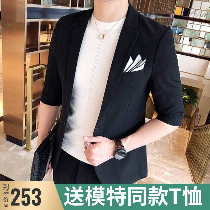 Summer short sleeve men's casual suit Korean fashion seven sleeve light suit men's suit slim fit a thin set