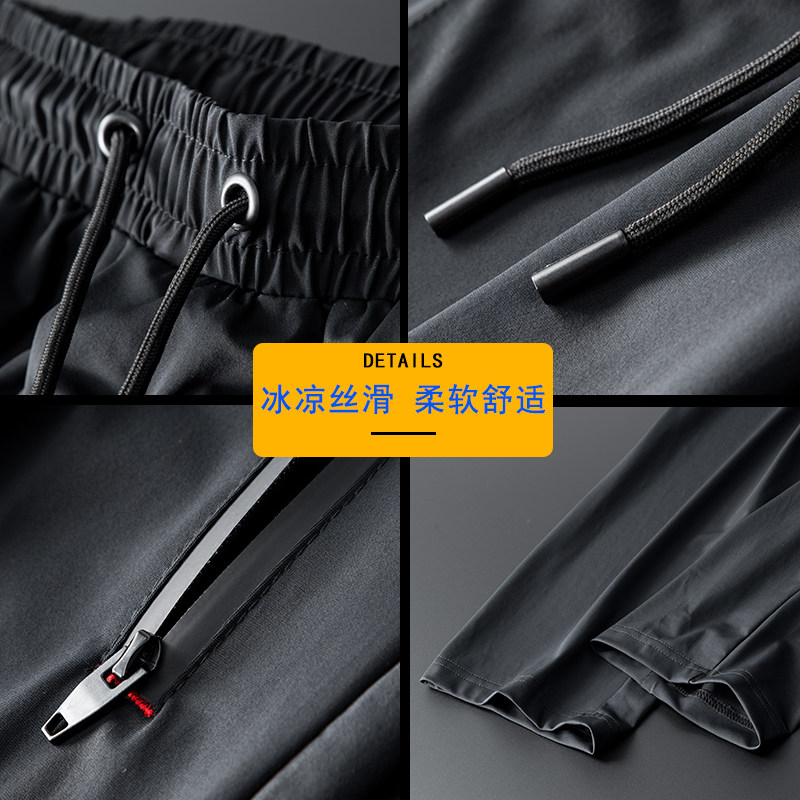 Sports pants men plus fat plus size straight tube loose ice silk breathable quick-drying casual pants air conditioning pants fat summer thin