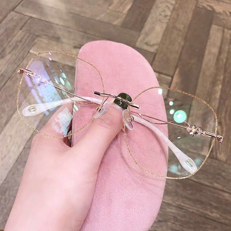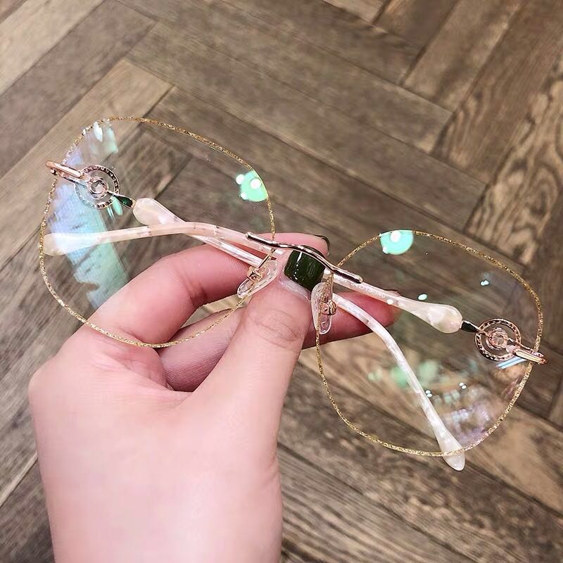 Anti-blue light radiation No frame cutting edge Nearsightedness Glasses Woman with Degrees Vegan Round Face eyes Shelf Han version Tidal Net Red