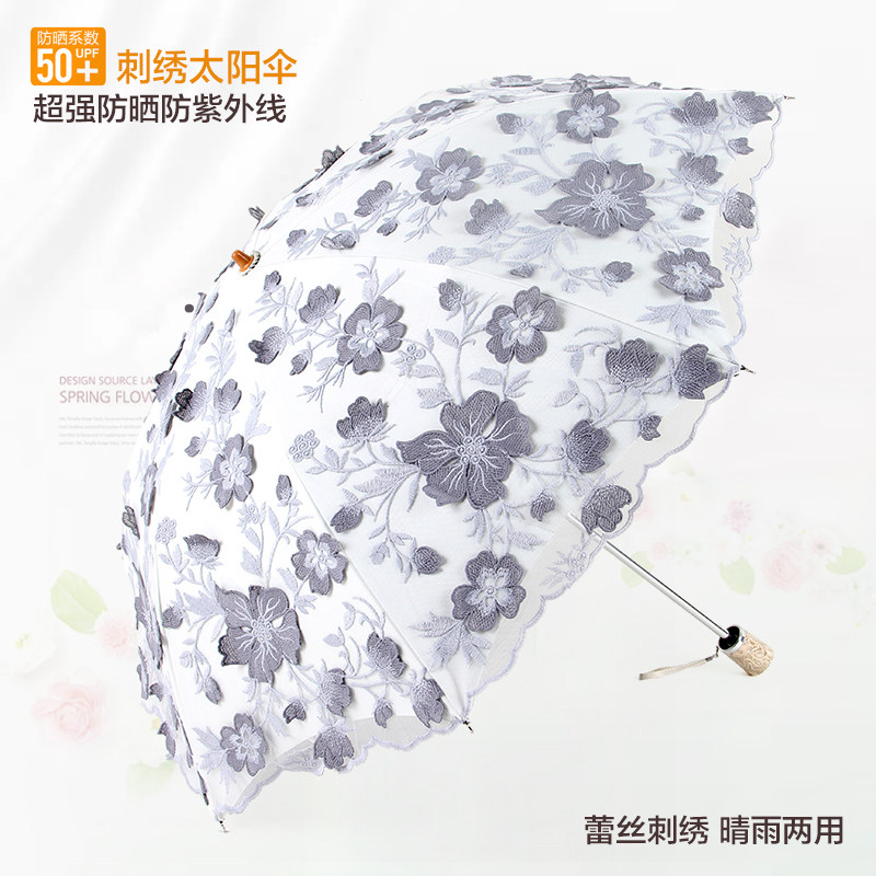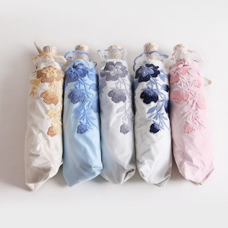 Upscale Goddess Ocean umbrella sunscreen anti-UV black gum shading umbrella lace embroidery shading umbrella sunny and two folding umbrellas