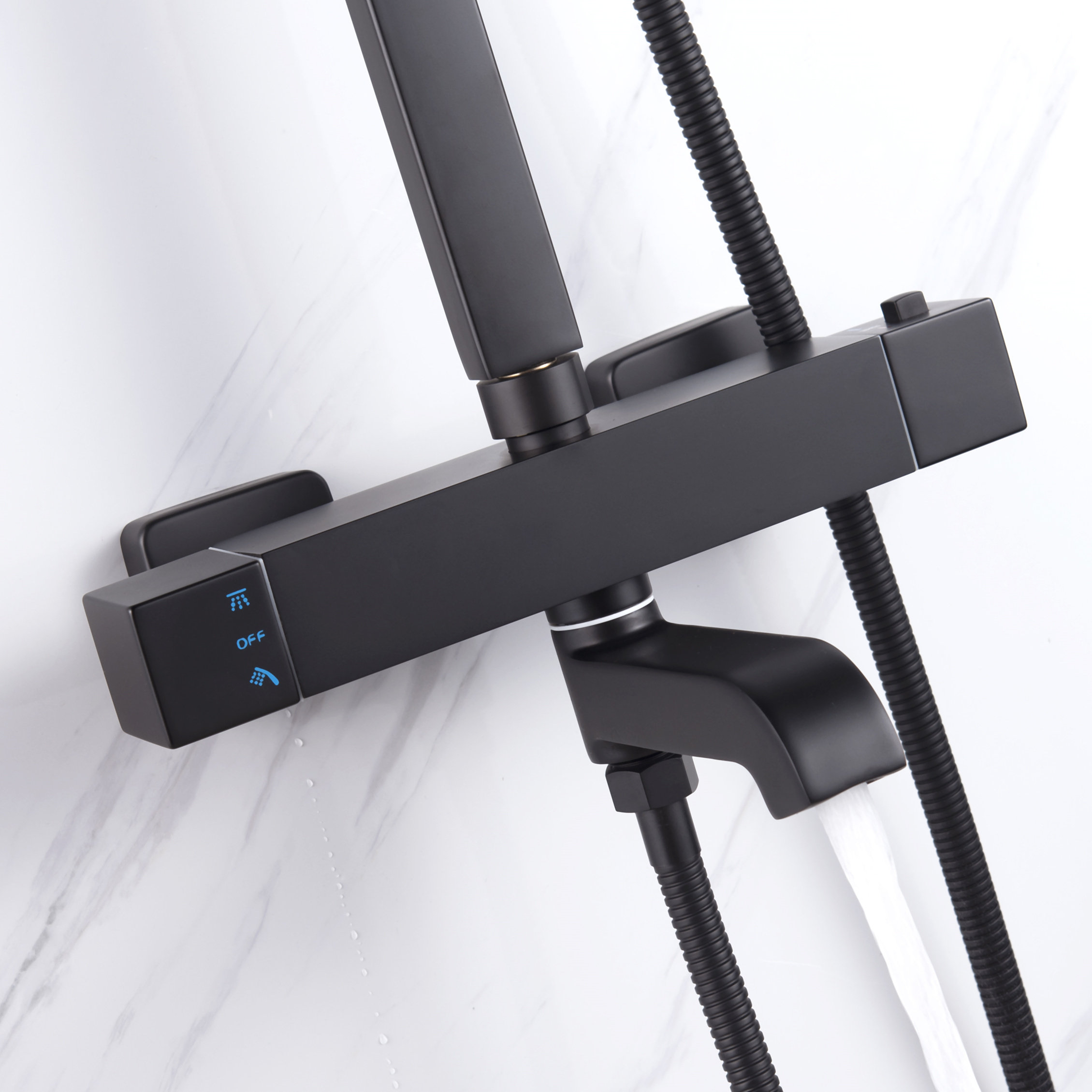 German LANCE thermostatic shower head shower kit booster nozzle black square out of tap water mixing valve