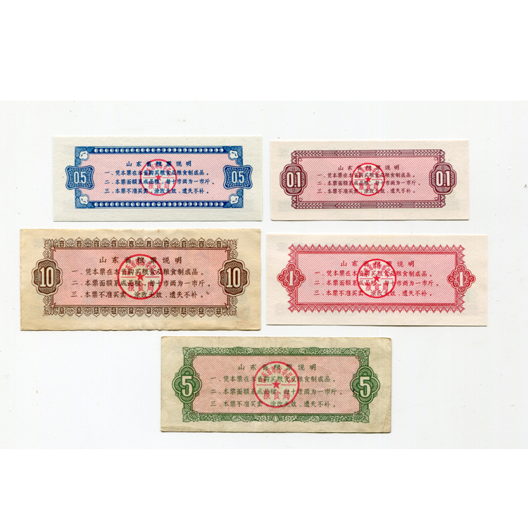 (Secret Anti-Counterfeiting) Fidelity 1971 "Shandong Province Food Stamps" Complete Set of 5 Pieces Three New and Two Old Originals