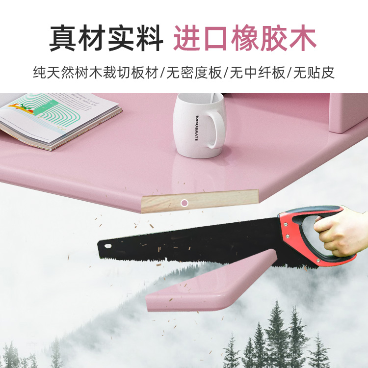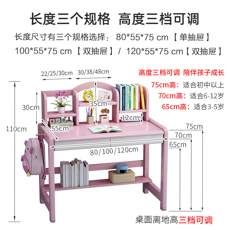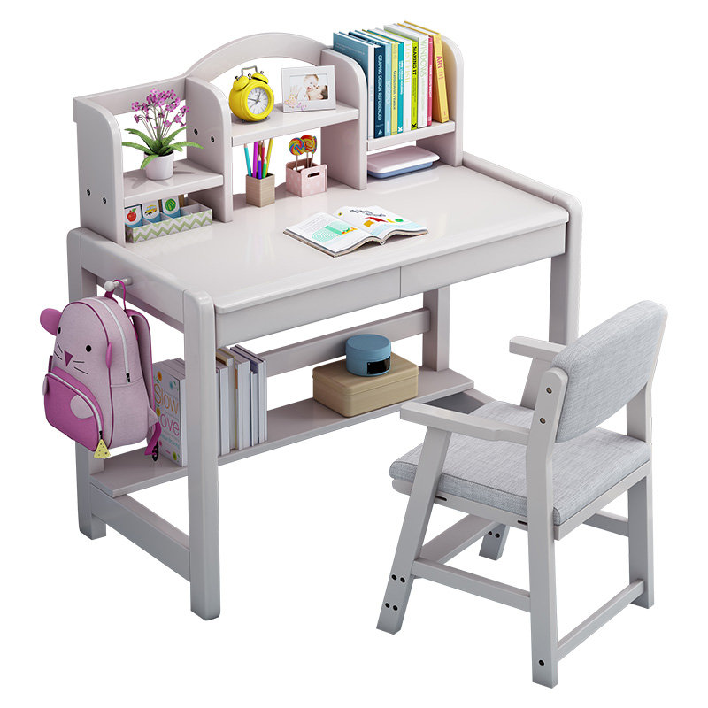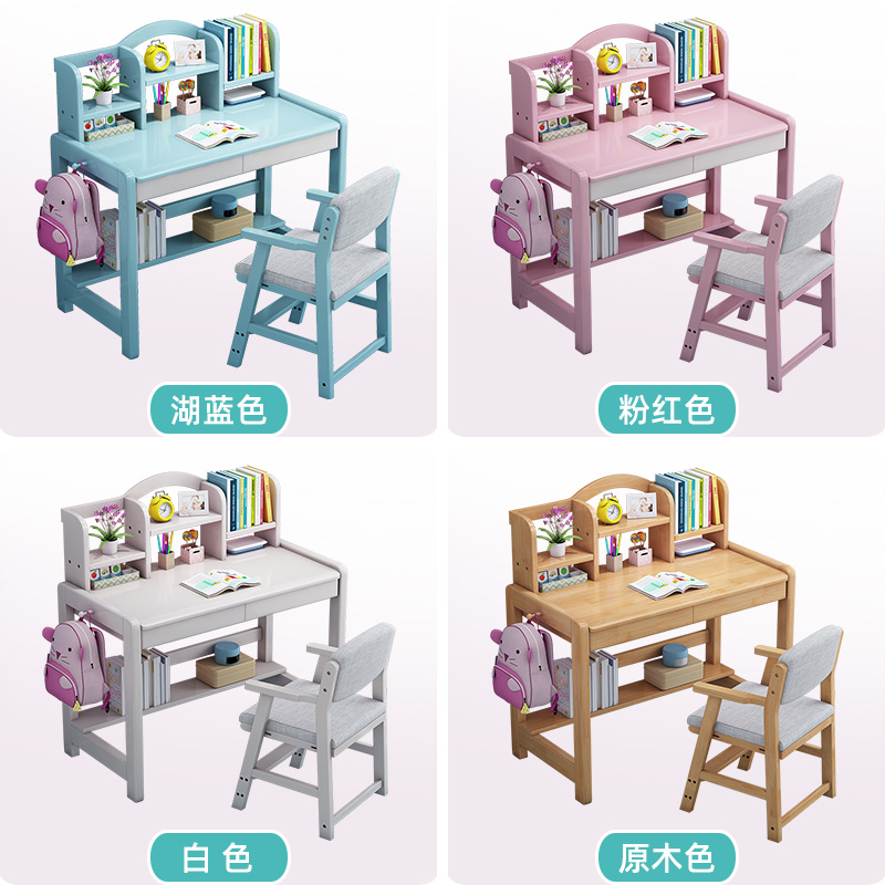 Children's solid wood desk bookshelf combination student study table simple home bedroom girl writing desk one table and chair