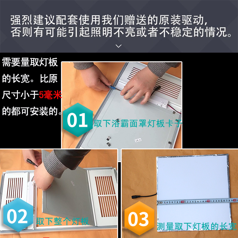 Bathmaster lighting board LED lighting sheet integrated ceiling flat panel light source wick heater replacement accessories