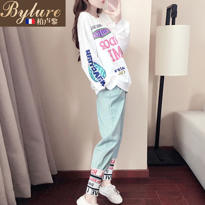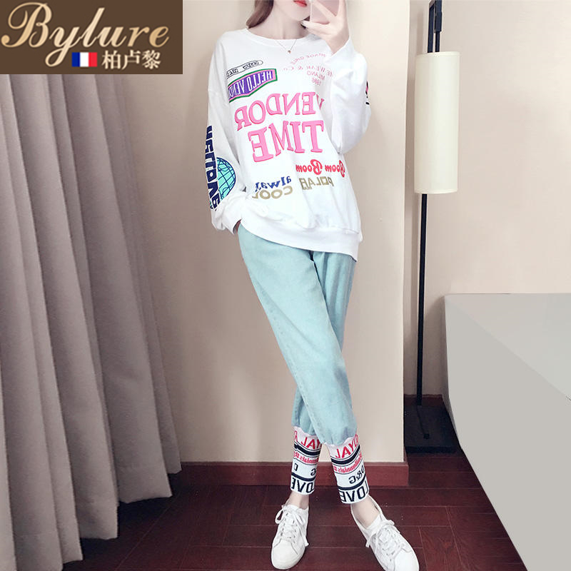 Bylure sports and leisure suit women's spring new fashion Korean version loose and thin foreign style age-reducing trendy brand sweater