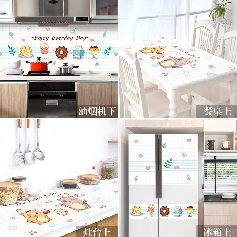 Thickened kitchen oil-proof stickers self-adhesive waterproof high temperature resistant wall stickers stove range hood overall cabinet countertop fire wallpaper