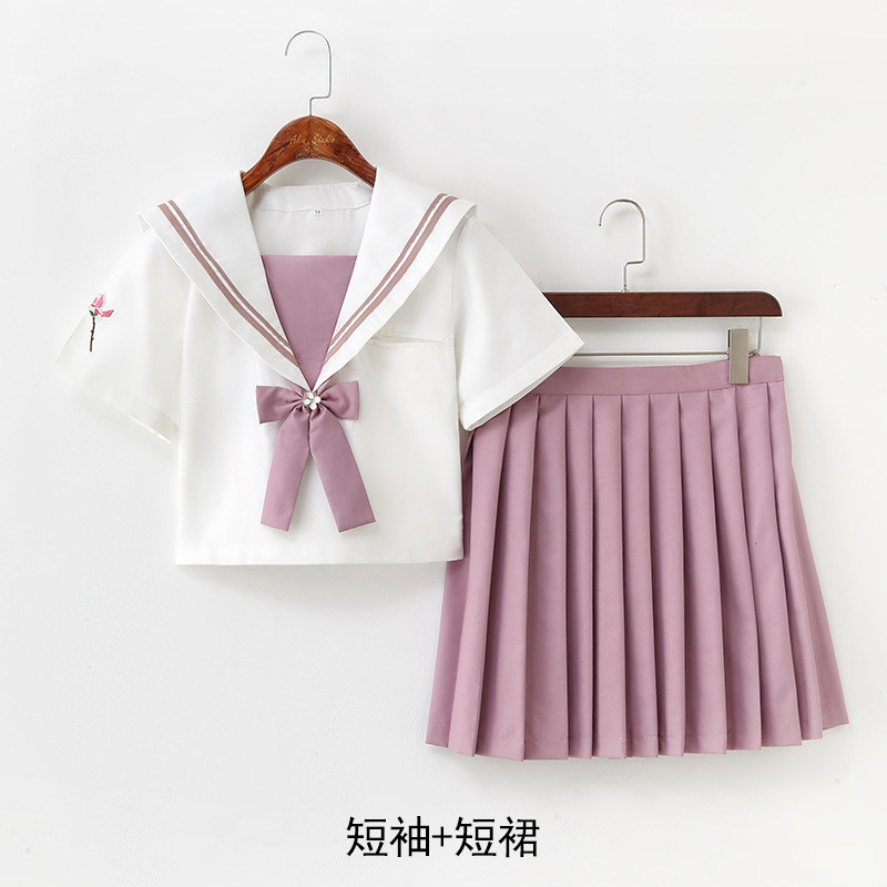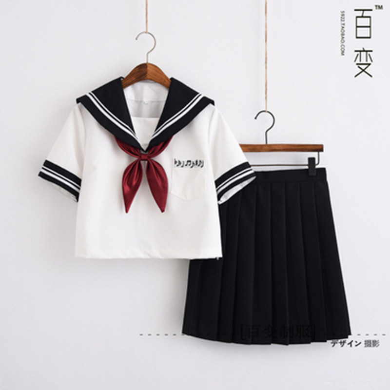 jk uniform skirt genuine suit Full set of summer short-sleeved student suit Sailor suit College style women's pleated skirt two-piece set