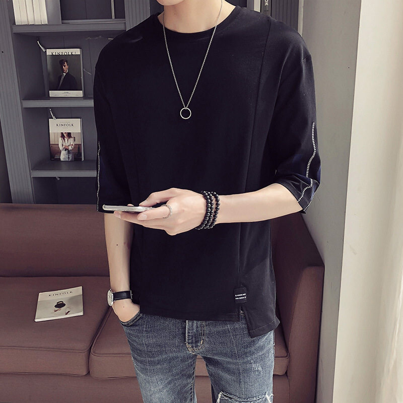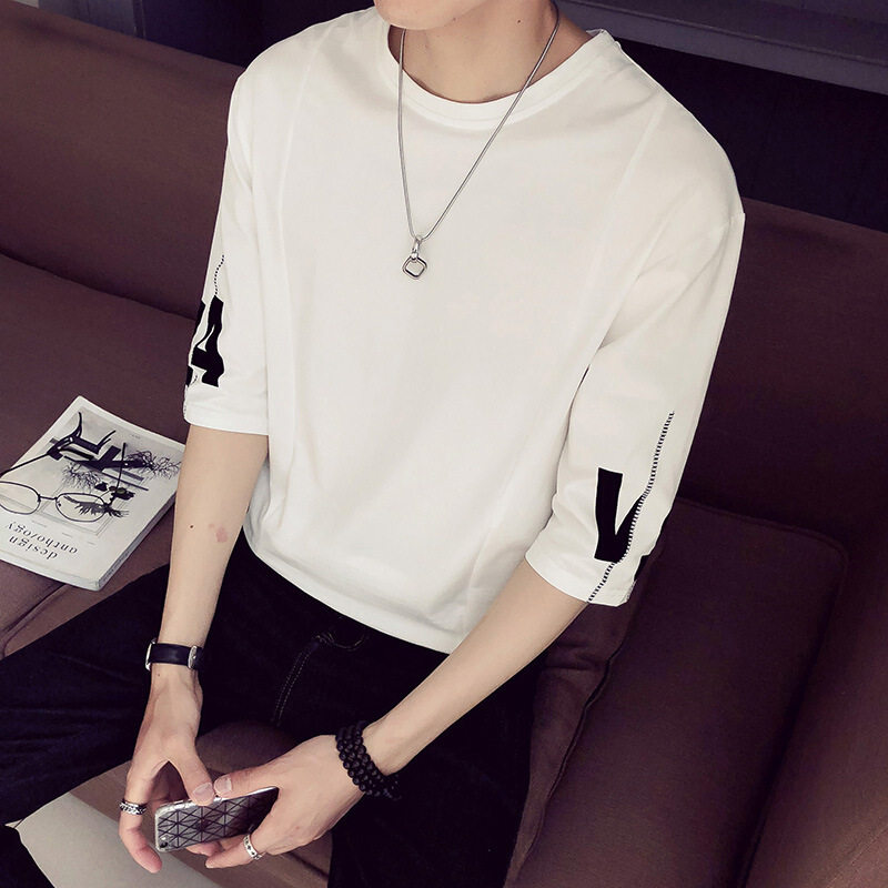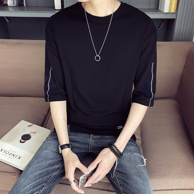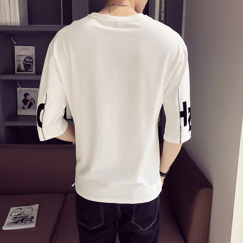 70% Sleeve T-shirt Men Ins Tide Cards Summer Mid-Sleeve Men 50% sleeves Half Sleeves Loose Korean version trendy clothes