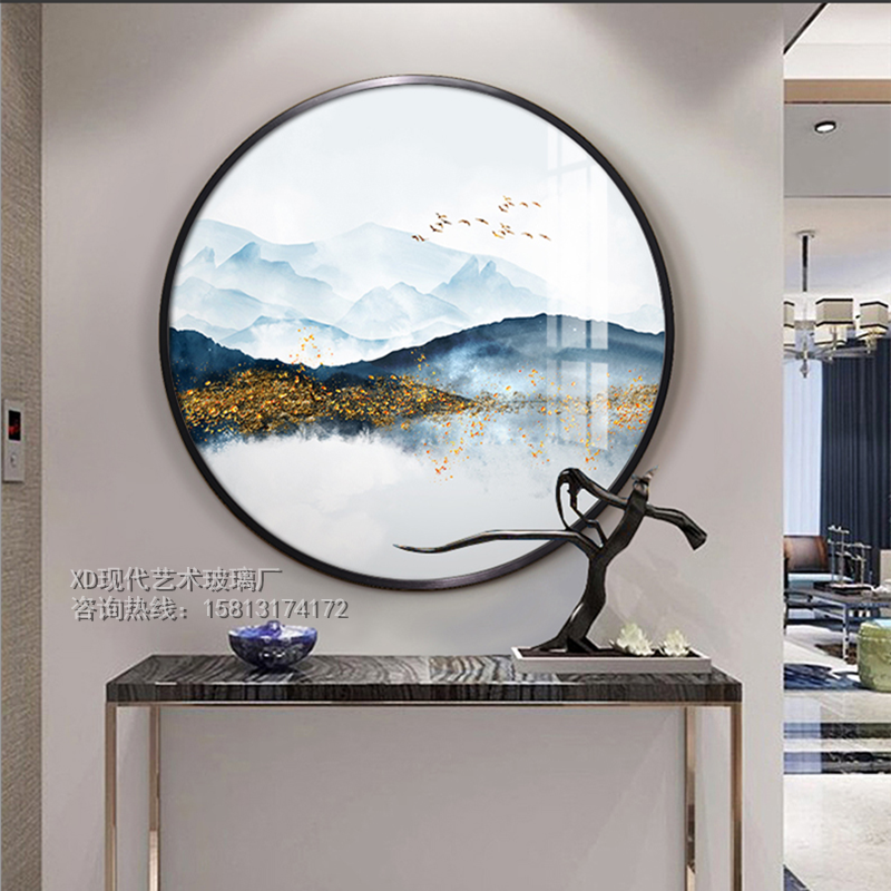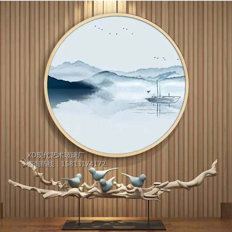 New Chinese high-end living room screen bedroom decorated round porch background wall wall waterworks hanging art glass customization