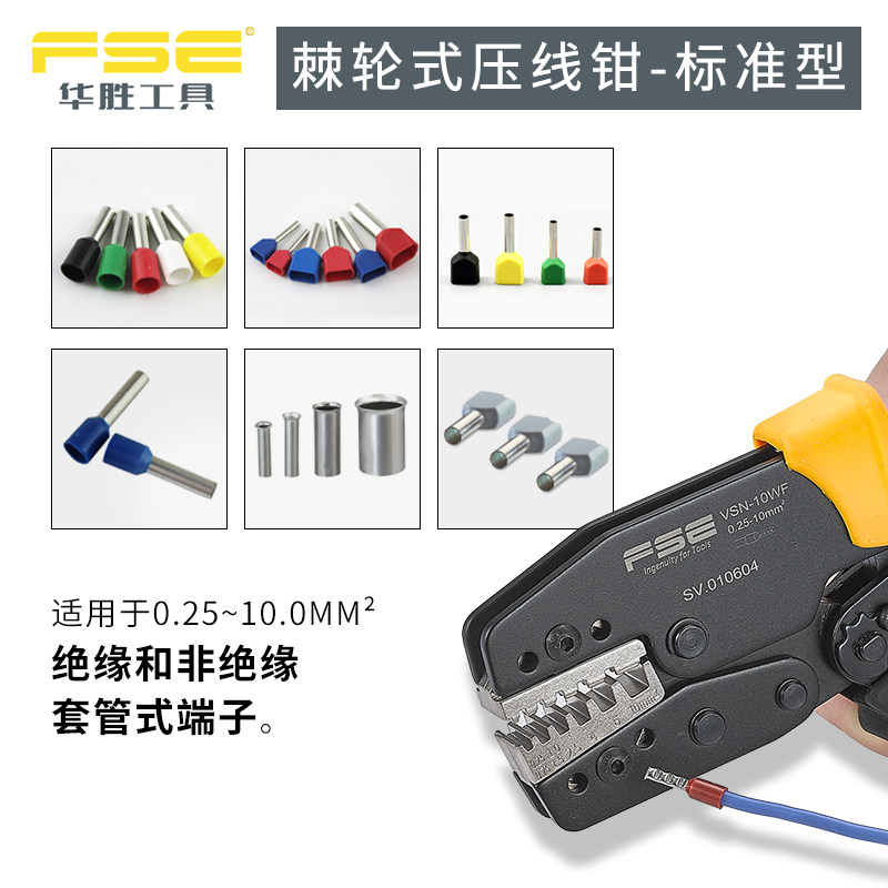 New Zhejiang Huasheng VSN-10WF tube crimping pliers Cold terminal pliers needle terminal 0 25-10mm