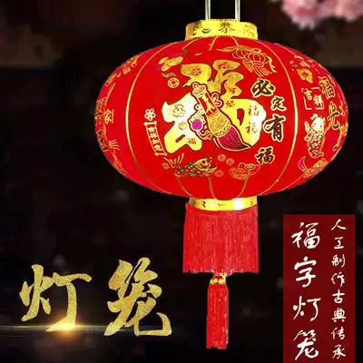 Fu word flocking cloth Red Lantern must be blessed door self-built house outdoor waterproof sunscreen festival festive hanging