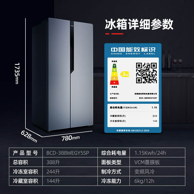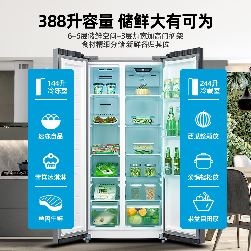 Condya Double Door Fridge Home Air-cooled Frost-free Double Switch Two Doors Power Saving Frequency Conversion Rental Large Capacity Refrigerator