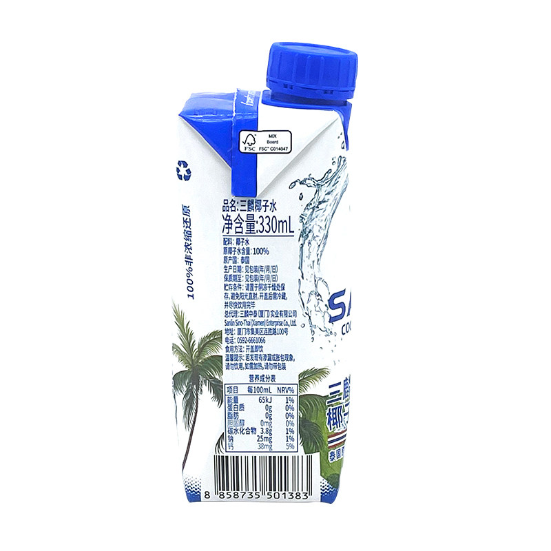 Three-in-coconut water clear and sweet and thirsty and fragrant coconut water 330ml * 12 boxes