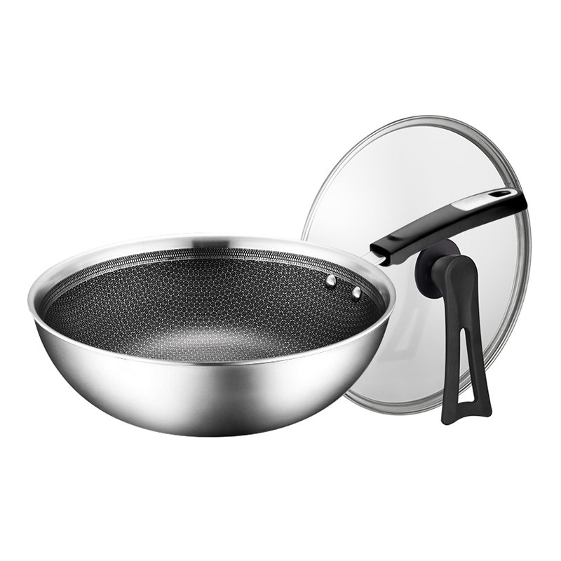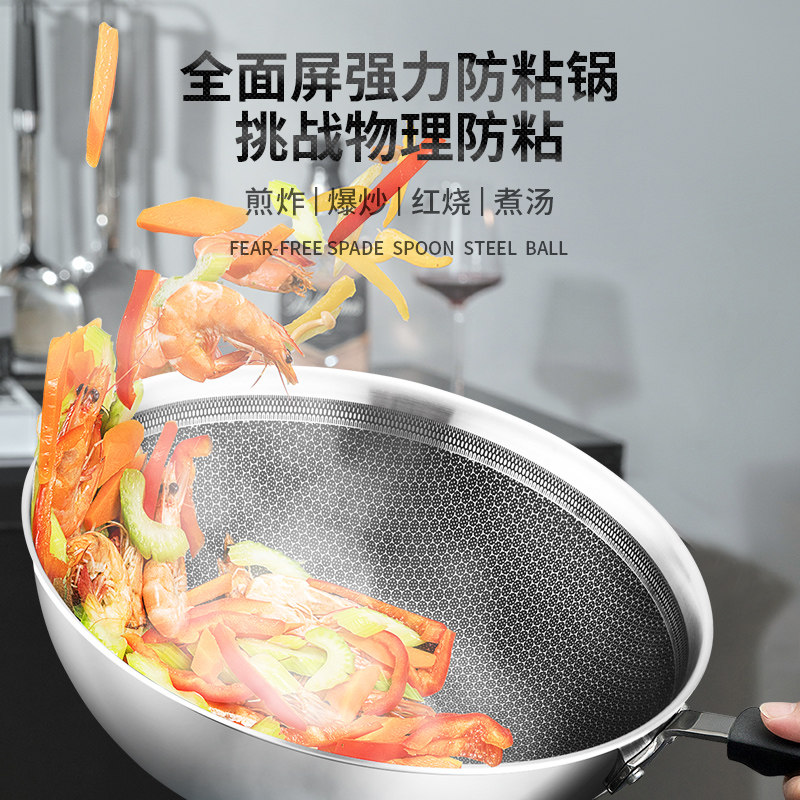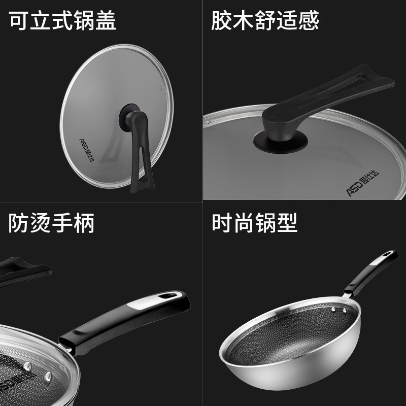 Aishida honeycomb anti-stick pot 304 stainless steel wok Household induction cooker Gas suitable for less fume wok