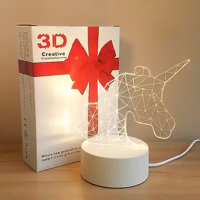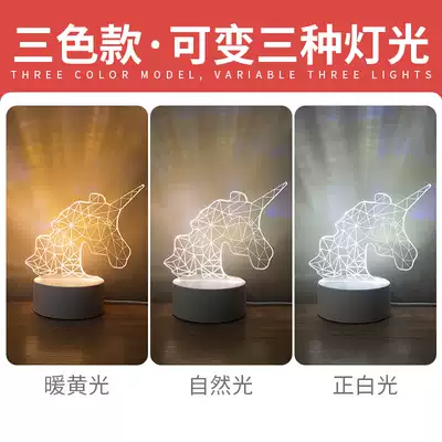 Unicorn 3d night light creative bedroom sleep eye protection bedside lamp LED energy saving lamp girl heart dormitory usb