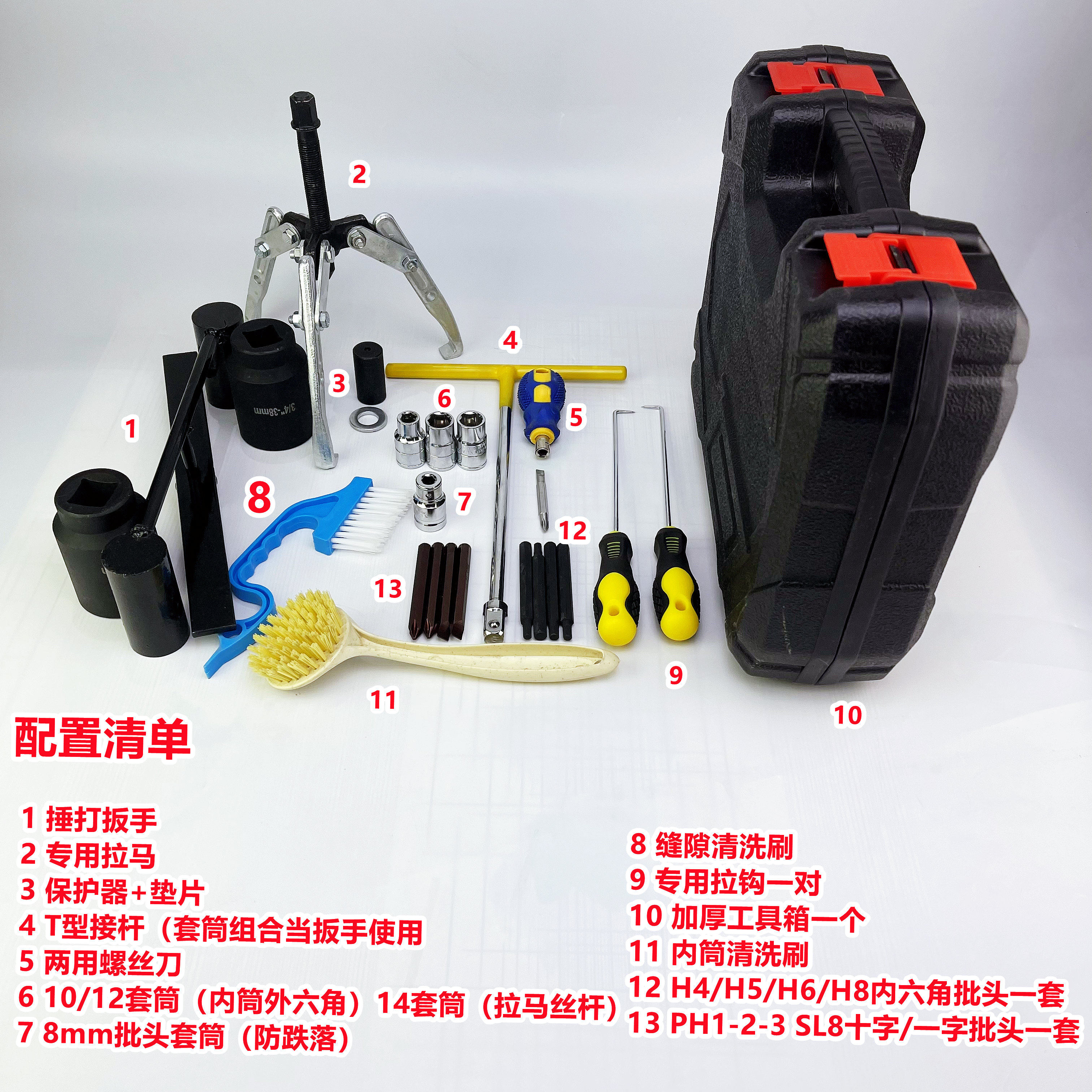 Home cleaning full set Economy edition home cleaning full set Professional edition Brush cleaning company full set Send toolbox cleaning company full set Send brush Toolbox disassembly cylinder universal tool multifunctional puller + wrench (10-12-14) pounding wrench (with 38 sleeves) 36 please note pounding wrench (36 38 double sleeve) professional puller + protector + gasket removing wheel screw tool desecting wheel tool