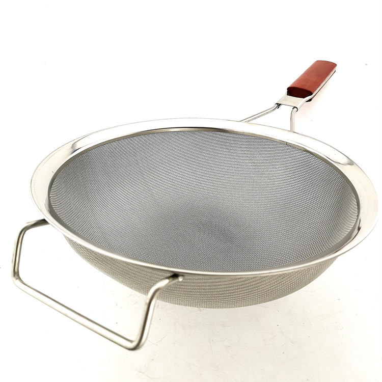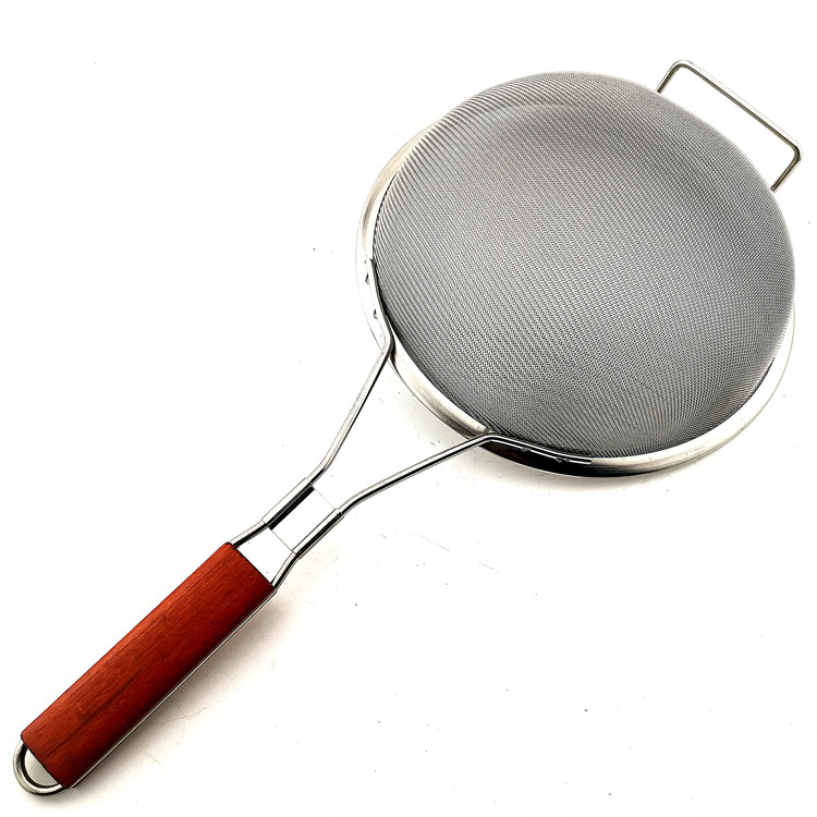 Stainless steel strainer oil wooden handle