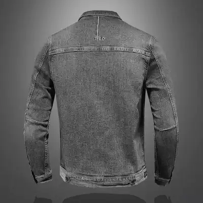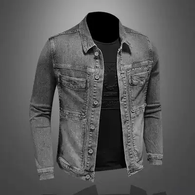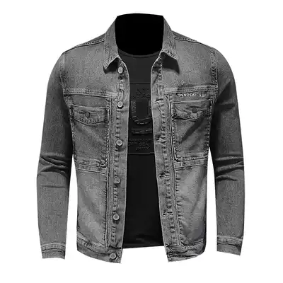 Smoke gray denim jacket men's dark gray jacket Korean trend loose spring and autumn retro tooling European and American Street tide