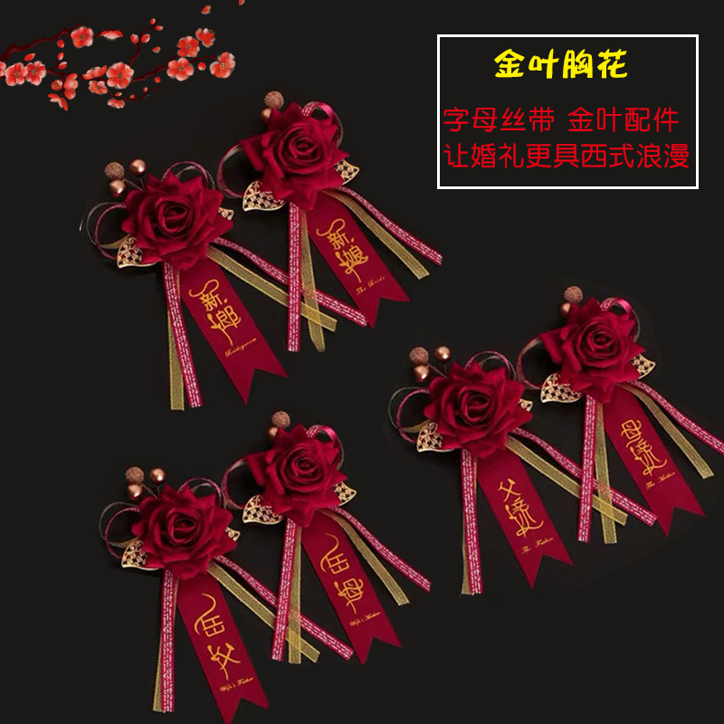 Wine red Golden Corsage (four pairs of set meal) Big Red Golden Corsage (four pairs of set meal) wine red golden joy Corsage (three pairs set meal) red golden joy Corsage (three pairs set meal) wine red Golden Leaf Corsage (four pairs set)