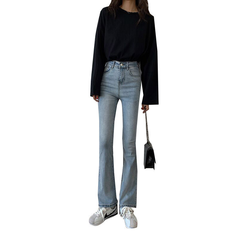 Xiaomi Bear High Waist Micro-Flare Jeans Women's Slim Fit Thin Elastic Retro Thin Section Dripping Wide Leg Mopping Trousers