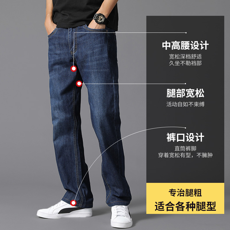 Summer jeans Men's straight cylinder loose middle-aged men's jeans Long pants Summer thin section High end Fat Man pants large size Size Tide