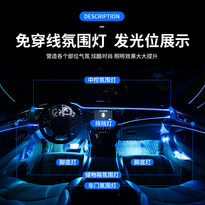 Automotive LED atmosphere lights interior decoration lights Wireless induction voice - controlled vibration and air - to - car modified light