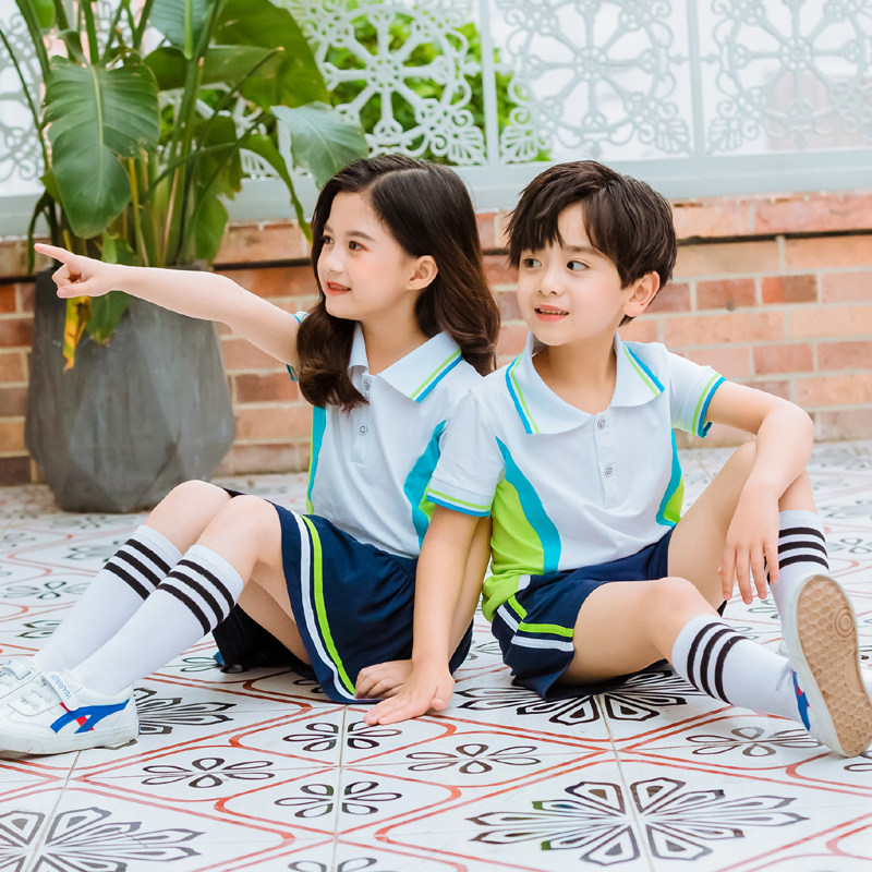 Kindergarten Garden Clothing Elementary School Students Class School Uniform 61 Children Performances Summer Sports Pure Cotton T-shirt Graduation Photo Suits