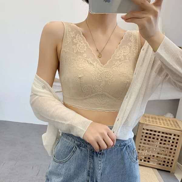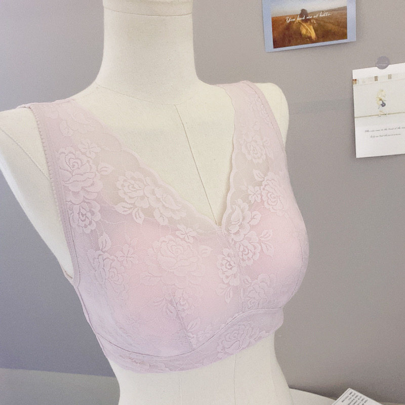 Large size thin section big chest small lace bra breast shockproof vest style comfortable sexy fat MM underwear without steel ring