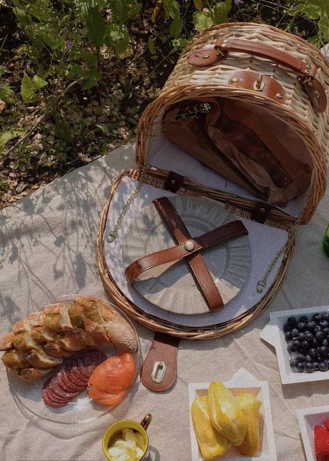 Sector willow woven basket sector wicker basket 2 persons knife fork spoons pan double basket package (with cutlery accessories) fan-shaped wicker (without knife fork tray) original color hand basket mint green rib (with knife fork cup tray) hand