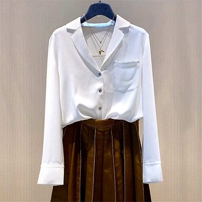 The Gothic new women's clothing special cabinet official web 2022 spring pituality V collar casual old daddy long sleeve shirt woman