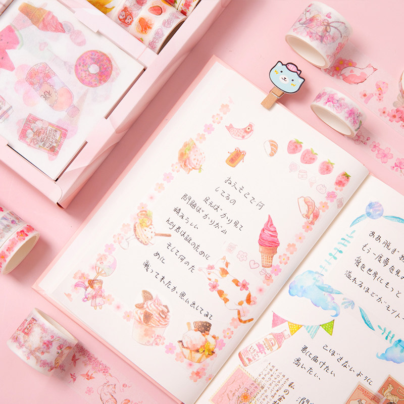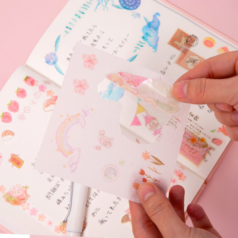 100 handbooks sticker material suit a big gift bag ancient wind cute teenage girl hearts and wind pattern day department and paper adhesive tape cartoon transparent and covered with materials for handbooks