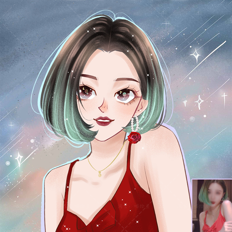 Colorful Mark brush Q avatar hand-painted cartoon comic image custom live-person photo transfer handdrawn illustration