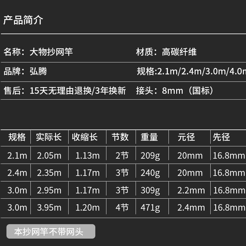 Hongteng copy net rod carbon shrink rod 3 meters large object copy net rod fishing net fishing rod copy rod fishing yellow eel telescopic rod