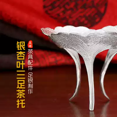 Suzhou silver building 999 silver tea tray tea leaked companion snow silver Chinese ginkgo leaf style pure handmade tea rack