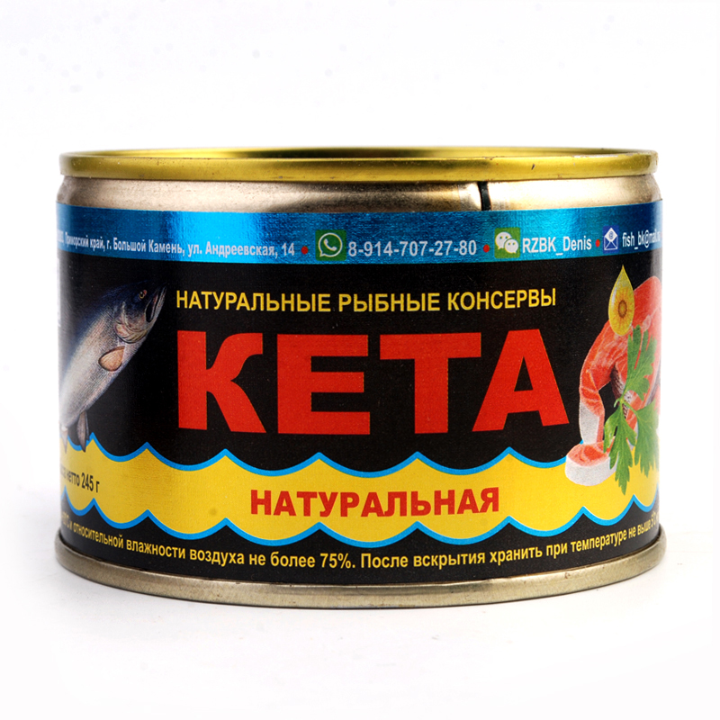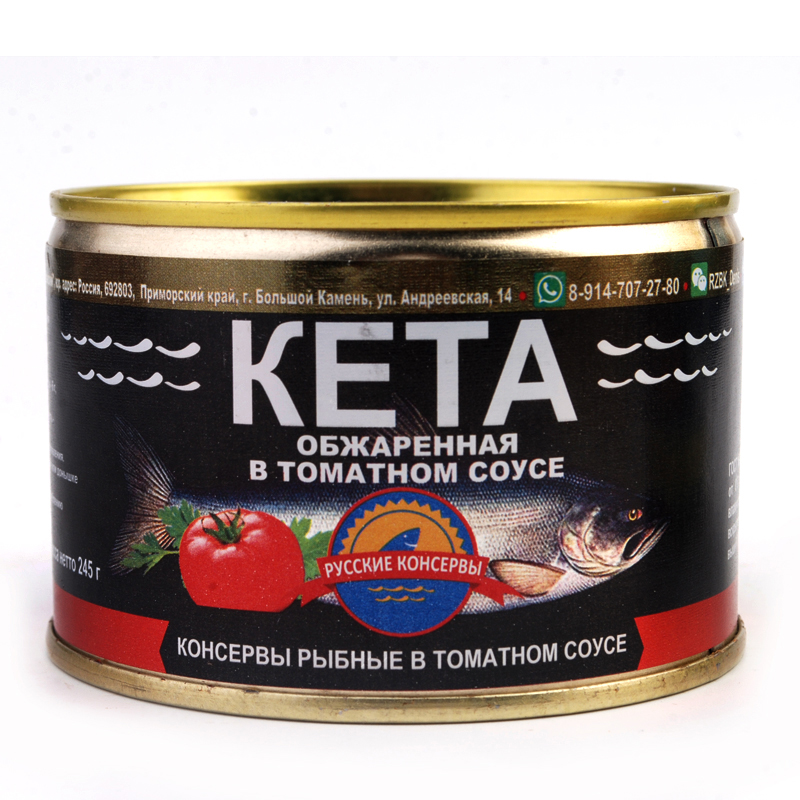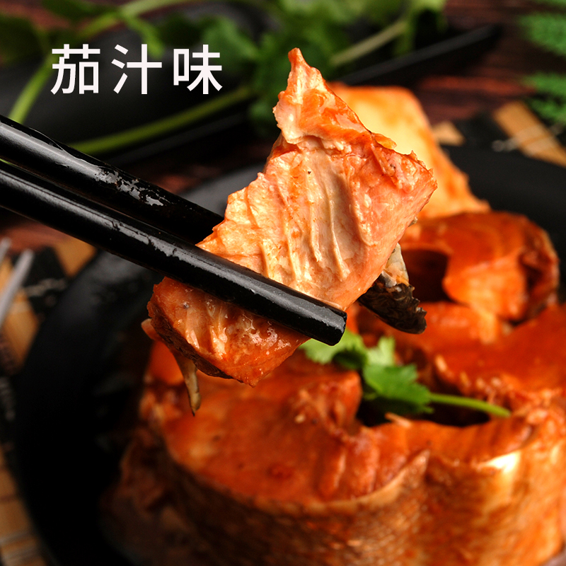 Russia imported salmon canned seafood tomato juice original picnic picnic open cover ready-to-eat 245g