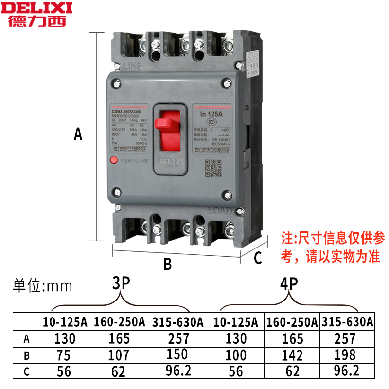 Delixi three-phase four-wire plastic shell type air switch 380v protection cdm3 molded case circuit breaker 100a
