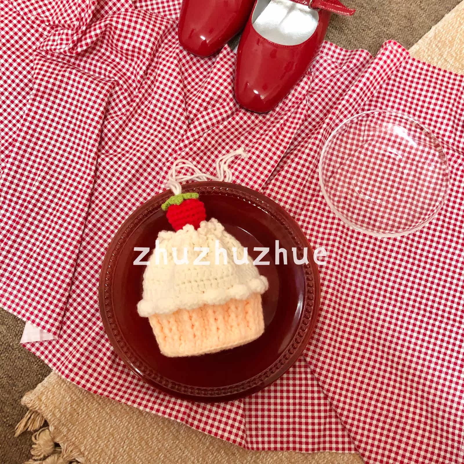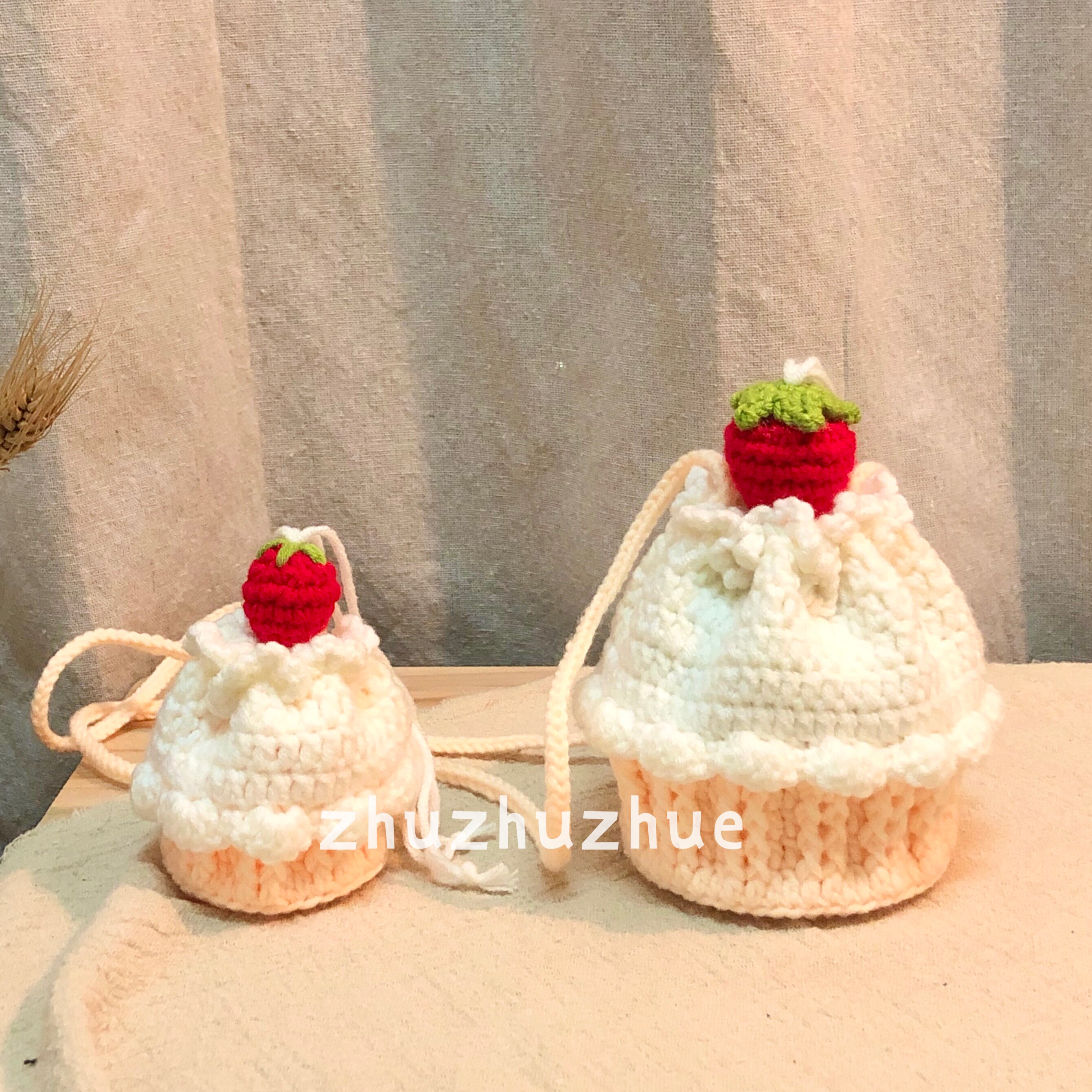 zhuzhuzhue original strawberry cream cupcake inclined cross woven bag diy material bag finished product