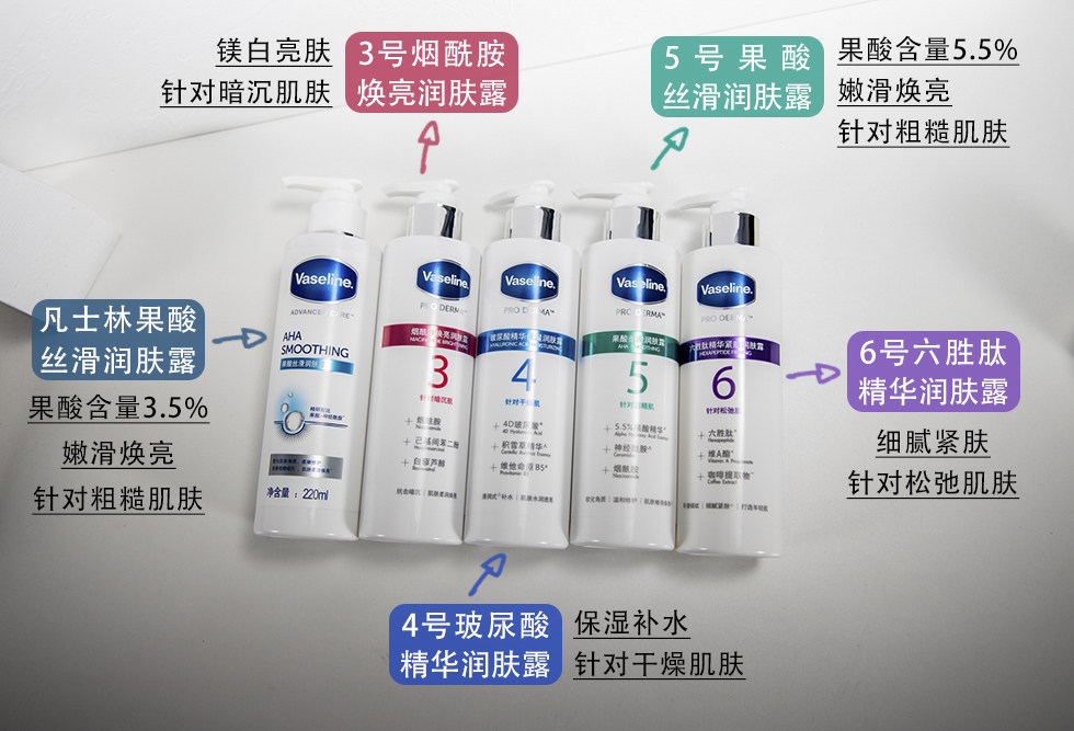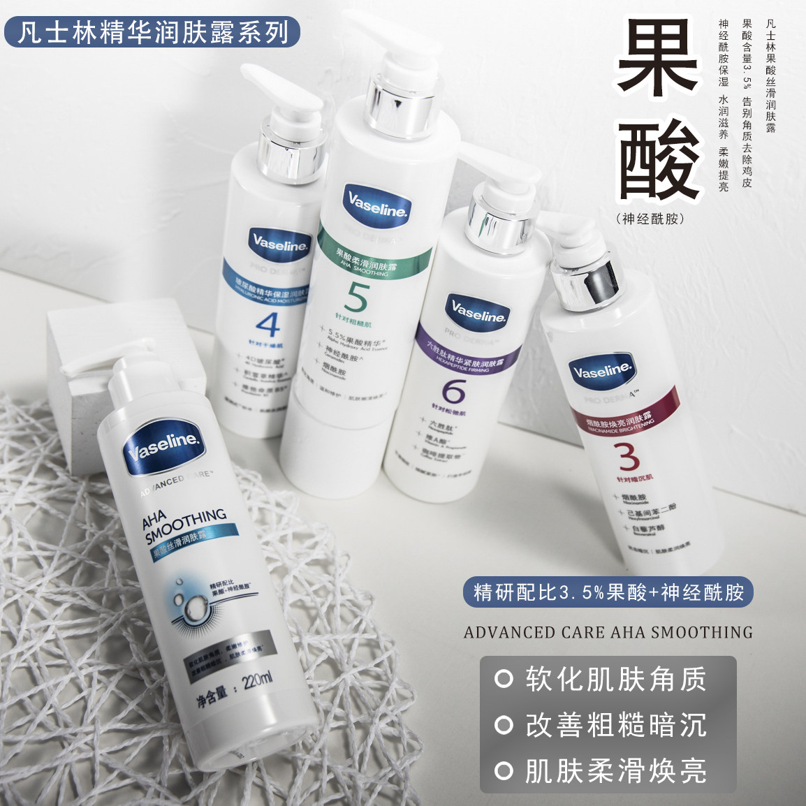 Vaseline No. 3, No. 4, No. 5, No. 6 fruit acid silky body lotion, body milk, hexapeptide, niacinamide, hyaluronic acid, moisturizing