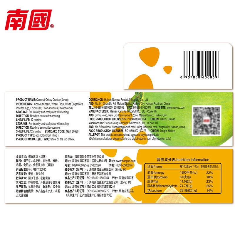 South National Coconut Pancakes 160g * 3 boxes of authentic Hainan specie Sweet Salty Taste Durian Banana Crisp Coconut biscuits