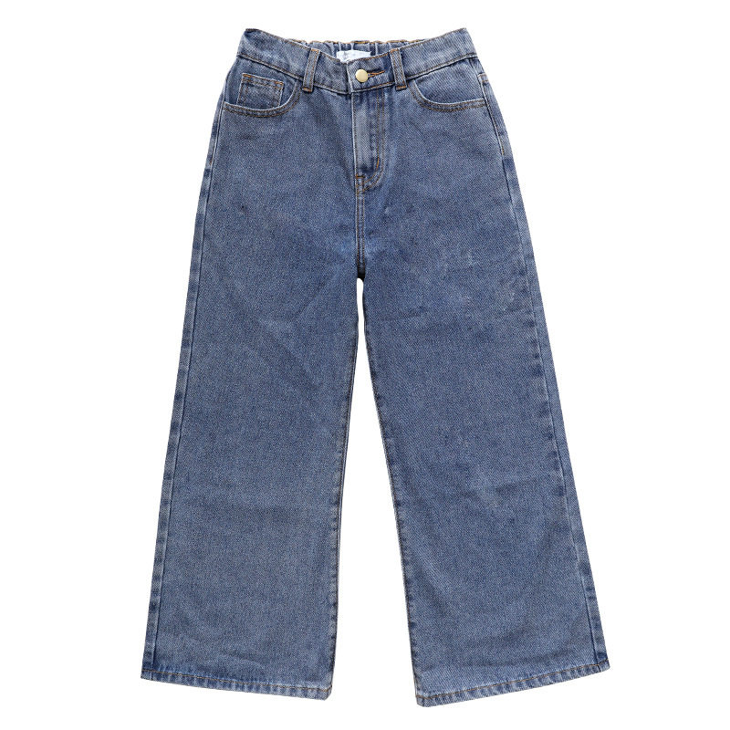 Spring and summer new children's clothing trousers for girls and boys pure cotton simple loose casual all-match retro jeans wide-leg pants