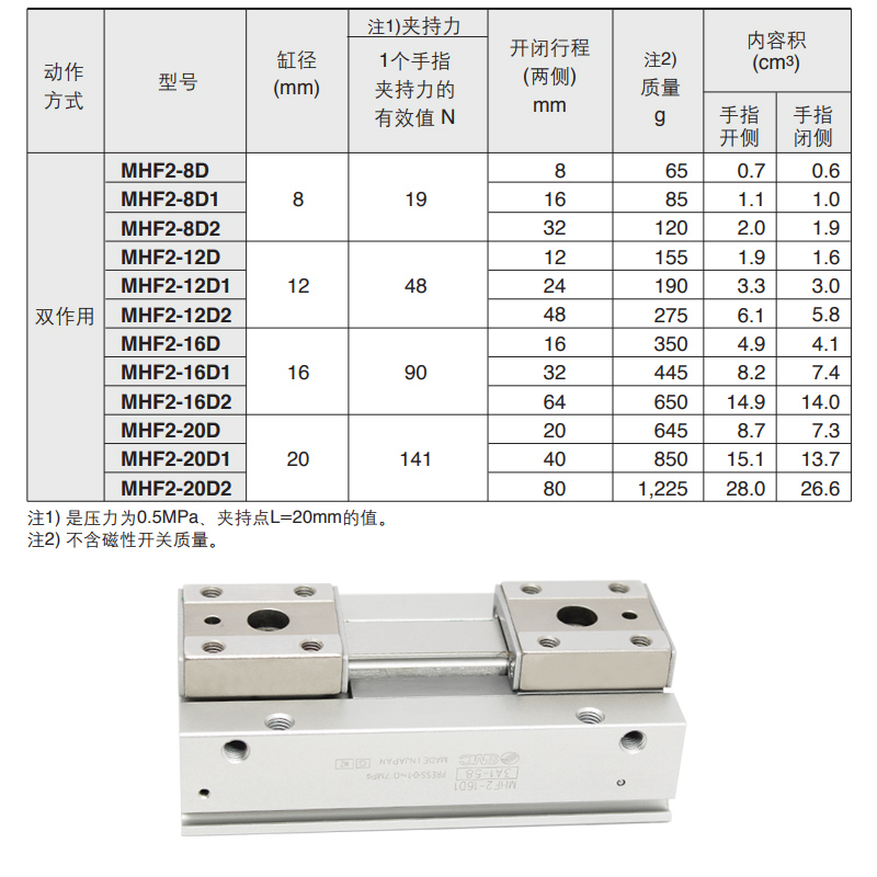 SMC Precision Parallel clamping jaw cylinder MHF2-8D 12D 12D MHF2-20D D1 D1 D2 D2 D1R D2R DR D1R D2R