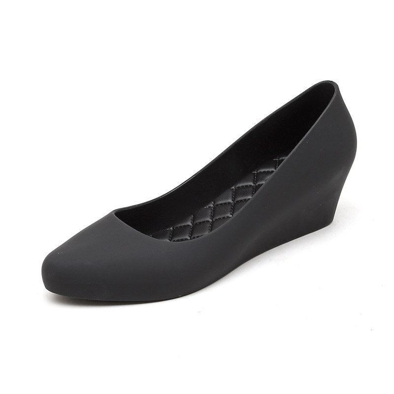 Medium heel 5 cm solid color shallow mouth Baotou wedge rain boots small pointed toe non-slip waterproof shoes beach shoes jelly shoes women
