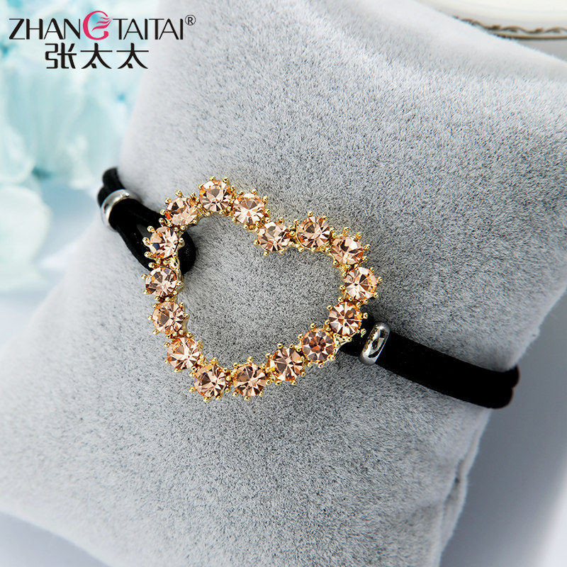Mrs. Zhang's new hair Circle Heart-shaped Water Drill Leather Fascia Women Zahin Han Edition Brief Black Hair Circle Refined Temperament Head Decoration