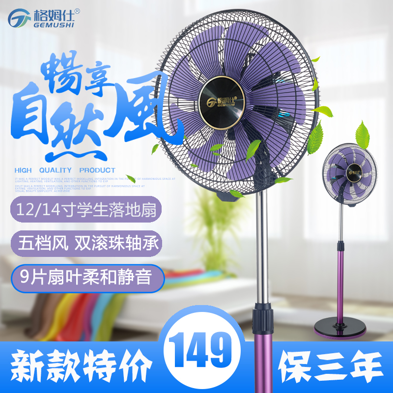 Gumshi floor fan Household electric fan vertical mute 12 inch 14 inch children's fan dormitory mechanical shaking head 9 leaves
