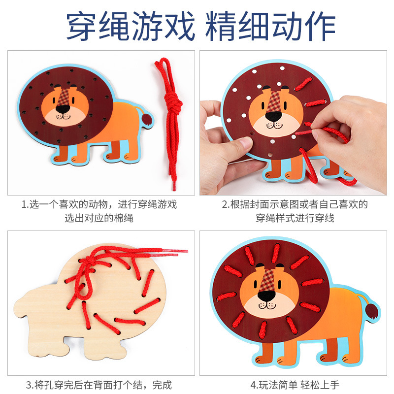 Children's threading board concentration fine motor training hand-eye coordination animal fruit wooden early education educational toys