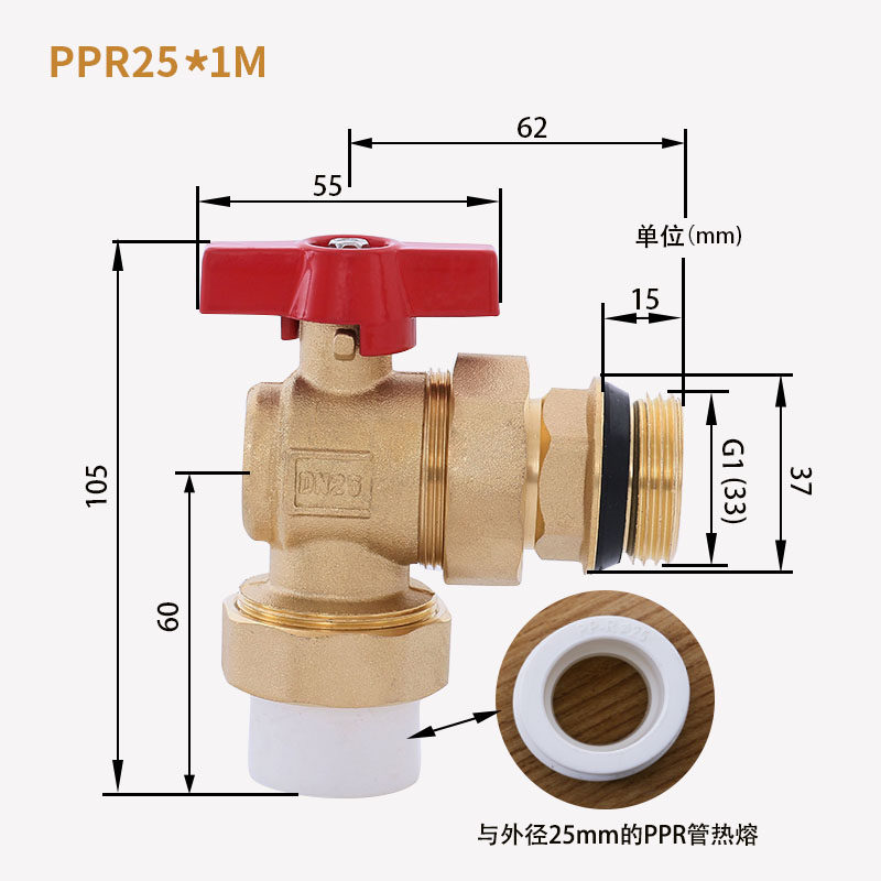 Angle valve floor heating valve full copper angle PPR ball valve 25 electroplating 1 inch outer wire ball valve